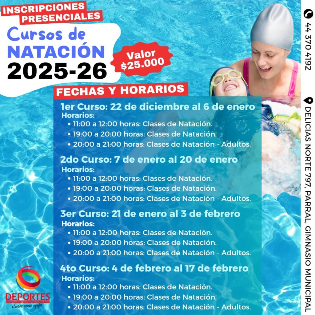Querida comunidad, les comentamos que ya abrimos las inscripciones para una nueva versión de nuestro curso de natación, temporada 2025-26.