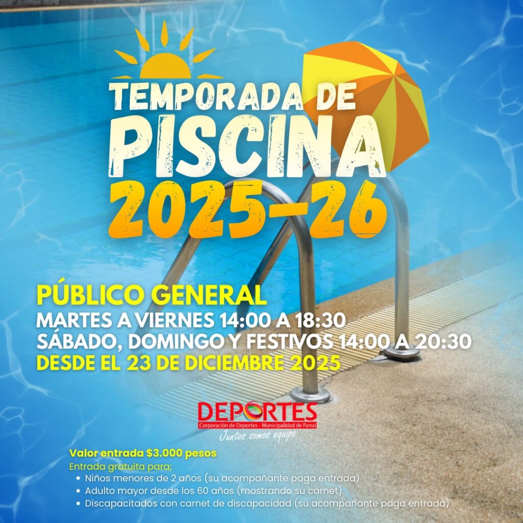 El día martes 23 de diciembre del 2025 nuestra piscina municipal abrirá sus puertas para público en general.